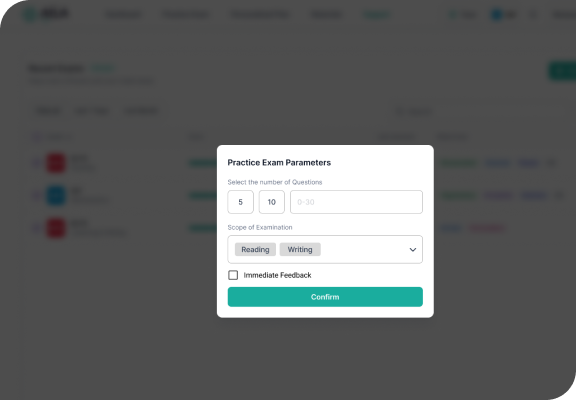 اصقل مهاراتك في بيئة تشبه الامتحان الحقيقي تمامًا. تعرّف على شكل الاختبار ومواعيده، مما يعزز ثقتك بنفسك ويقلل من قلقك في يوم الامتحان.