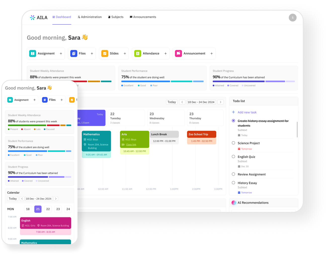 AILA is an AI-driven learning platform designed to provide personalized education experiences for students, streamline teacher workflows, and empower parents with insights into their child’s learning journey.