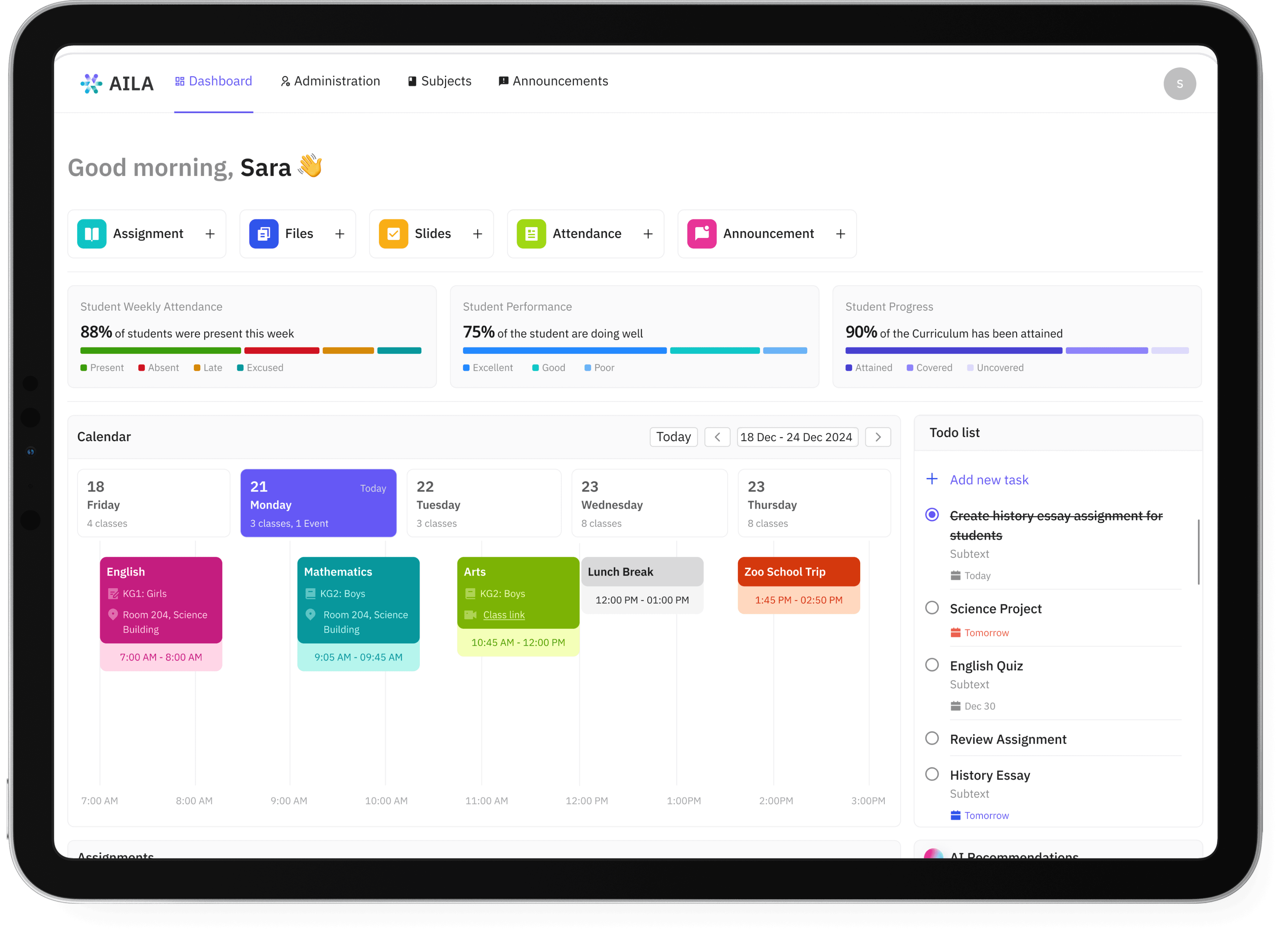 Plan your entire school term effortlessly in just a click. We understand how much effort goes into curriculum planning—simply upload your book, and AILA Schools will do the rest, breaking the curriculum into daily lessons for you. Unexpected school closures? No problem! Our smart planner lets you reschedule lessons seamlessly, ensuring you stay on track with your students while maintaining a balanced pace.